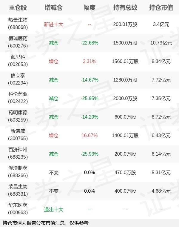 证券之星音信,10月28日工银瑞信基金旗下赵蓓责罚的工银瑞信前沿医疗股票型基金公布三季报,近1年净值增长率18.28%。与上一季度比拟,该基金前十大重仓股新增热景生物;其中恒瑞医药抓仓占比9.9%,为该基金第一大重仓股;华东医药等退出前十大重仓股;风雅数据如下: