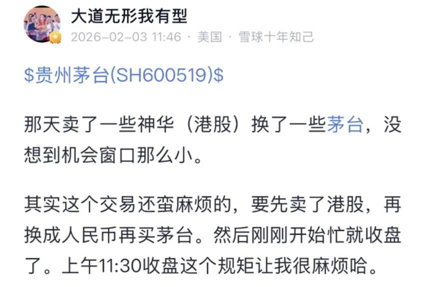2月3日,投资大佬段永平雪球发帖泄露,1月27日他卖出150万股中国神华H股,转而分6笔买入77194股贵州茅台,总参加约1亿元东说念主民币。近期贵州茅台股价上扬,近5个往还日涨幅超12%,段永平这笔抄底已浮盈超1000万。