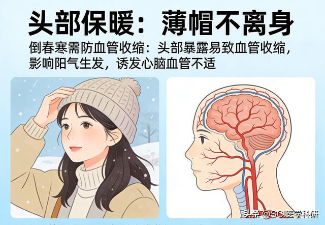 虽然天气转暖,但“倒春寒”不能不防。头部表现在凉风中,容易导致血管收缩,不仅影响阳气生发,还可能诱发心脑血管不适。